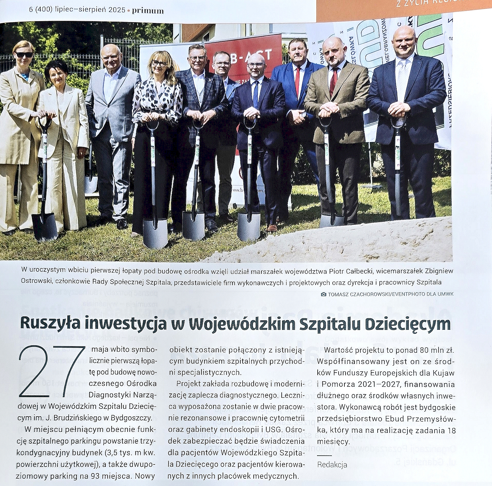 W Biuletynie Bydgoskiej Izby Lekarskiej Primum nr 6/2025 na str. 9 opublikowana została informacja dot. rozpoczęcia inwestycji w Wojewódzkim Szpitalu Dziecięcym w Bydgoszczy, której jesteśmy generalnym wykonawcą jako P.W. EBUD – Przemysłówka Sp. z o.o. Zapewniamy, że prace postępują zgodnie z planem i już niedługo kolejna relacja z placu budowy.